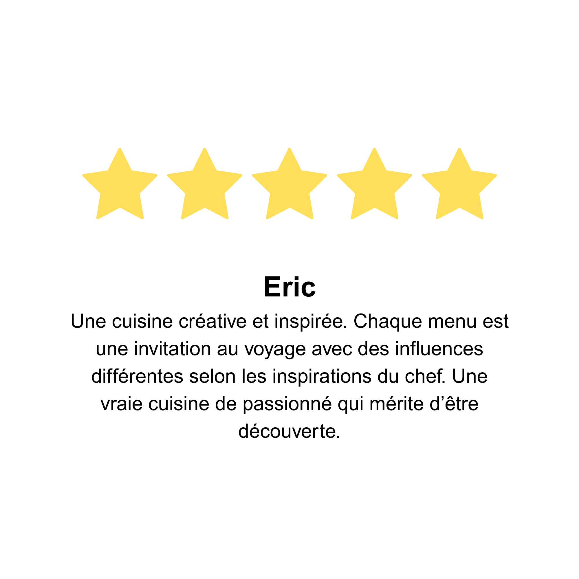 Ma cuisine est simple dans son intention : faire voyager, surprendre et créer des moments uniques, sans quitter la table.